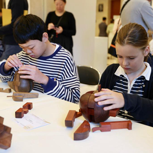 9月16日,小朋友在比利時(shí)布魯塞爾的中國使館開(kāi)放日活動(dòng)上體驗榫卯技藝。