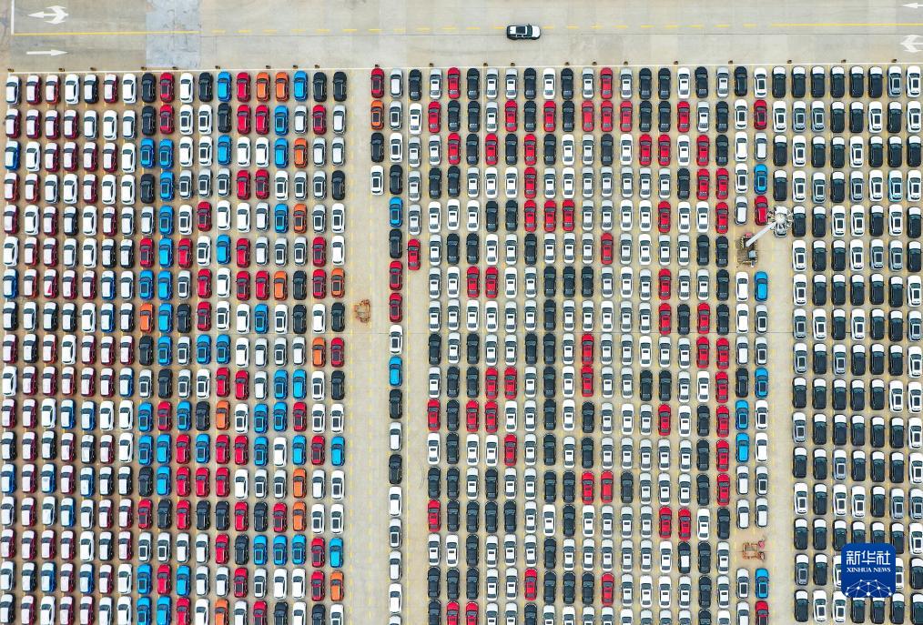 9月16日,在連云港港滾裝碼頭,汽車(chē)排列整齊,等待發(fā)運(無(wú)人機照片)。