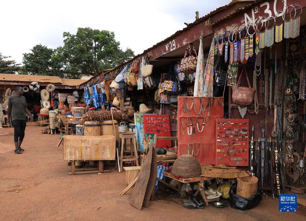 這是9月16日拍攝的喀麥隆雅溫得手工藝品市場(chǎng)。