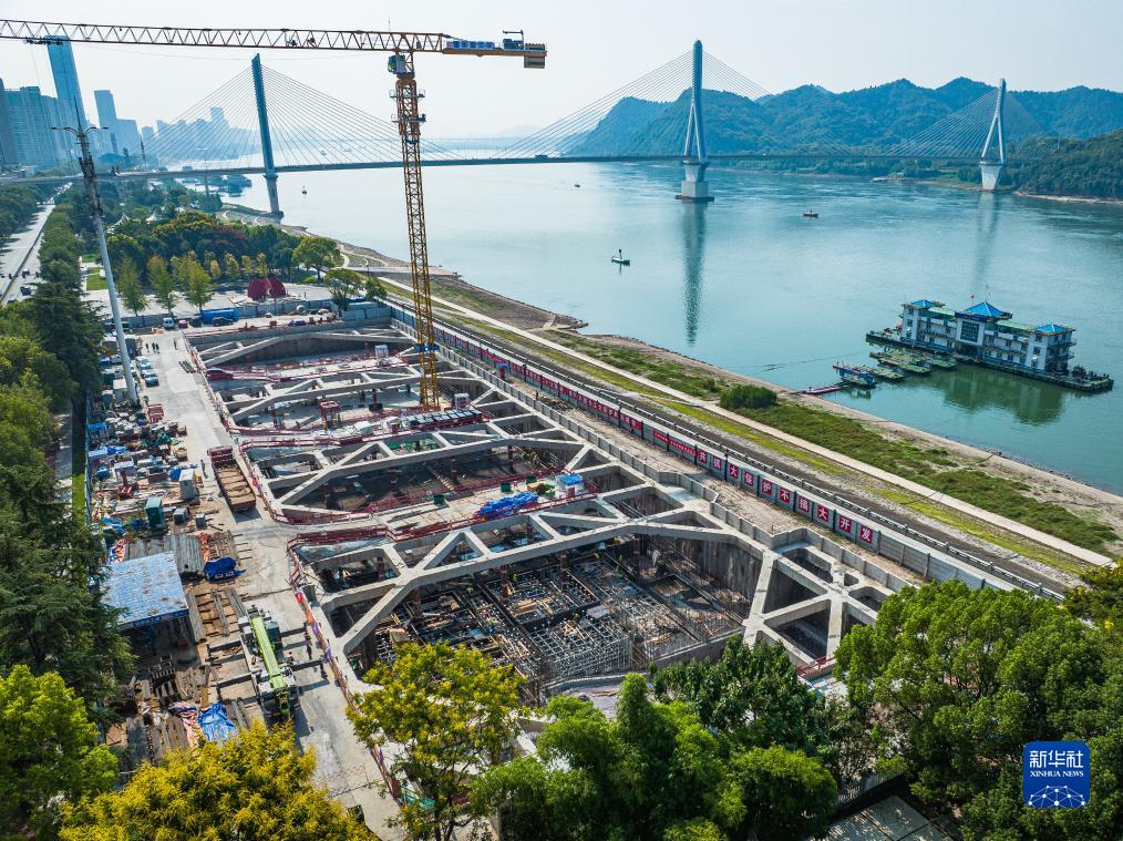 9月17日,三峽集團旗下長(cháng)江環(huán)保集團建設者在宜昌市“一江兩岸”污水廠(chǎng)網(wǎng)新建、改擴建項目大公橋調蓄池施工現場(chǎng)加緊建設(無(wú)人機照片)。
