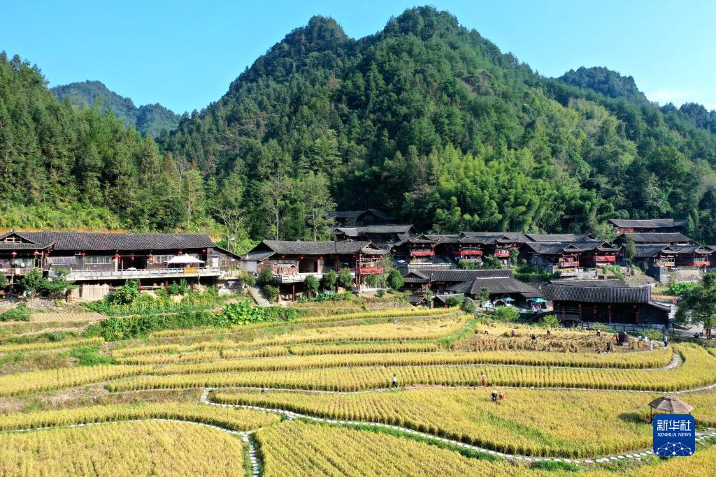 金秋時(shí)節,湖北省恩施土家族苗族自治州宣恩縣彭家寨古吊腳樓群景色如畫(huà)。吊腳樓群四周稻田成熟泛黃,樓上居民懸掛玉米點(diǎn)綴其間,古寨豐收圖景吸引游客前往感受金秋收獲的喜悅。彭家寨是鄂西山區保存完好的土家族民居群落,寨內吊腳樓建筑精美,古色古香。