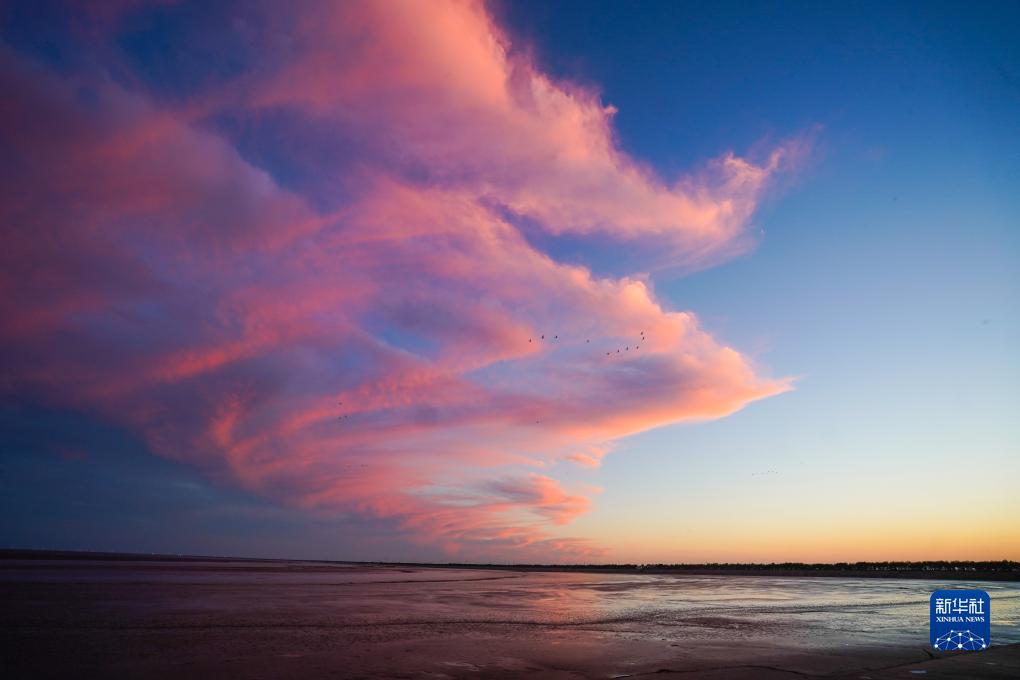 鹽城東臺條子泥濕地日落時(shí)分景色(2023年8月31日攝)。