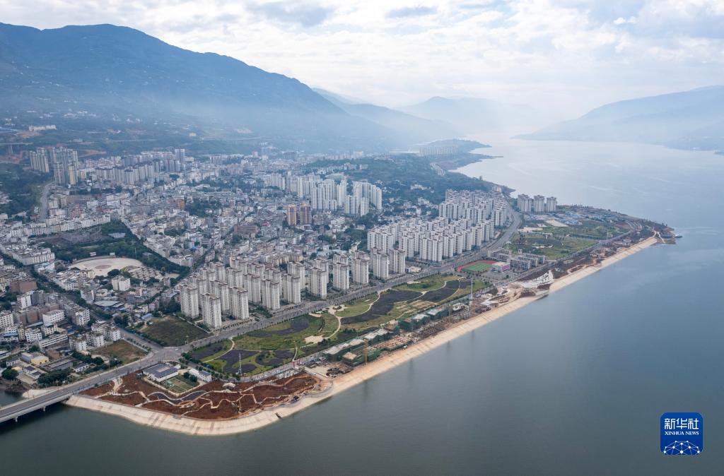 這是9月18日拍攝的位于白鶴灘水電站庫區的巧家縣城(無(wú)人機照片)。