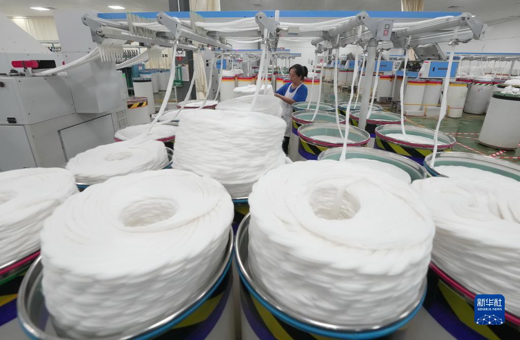 9月19日,工人在晉州市一家紡織企業(yè)的生產(chǎn)車(chē)間工作。
