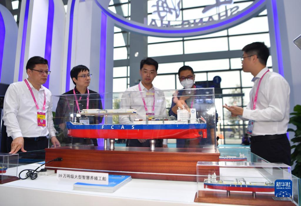 9月19日,觀(guān)眾在楊凌農高會(huì )了解一款大型智慧養殖工船模型。