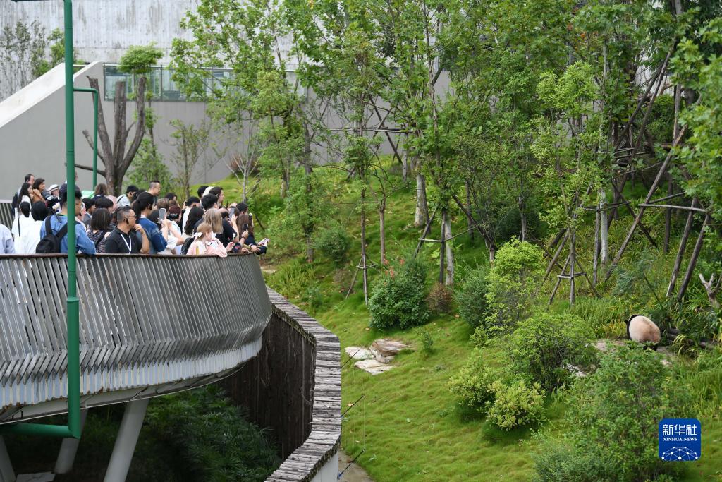 9月19日,參與金熊貓獎的中外嘉賓走進(jìn)成都大熊貓繁育研究基地近距離觀(guān)看大熊貓。