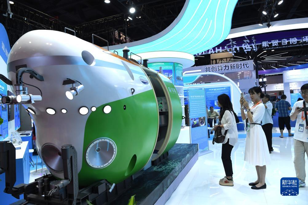 9月19日,觀(guān)眾在東博會(huì )上了解“奮斗者”號全海深載人潛水器模型。