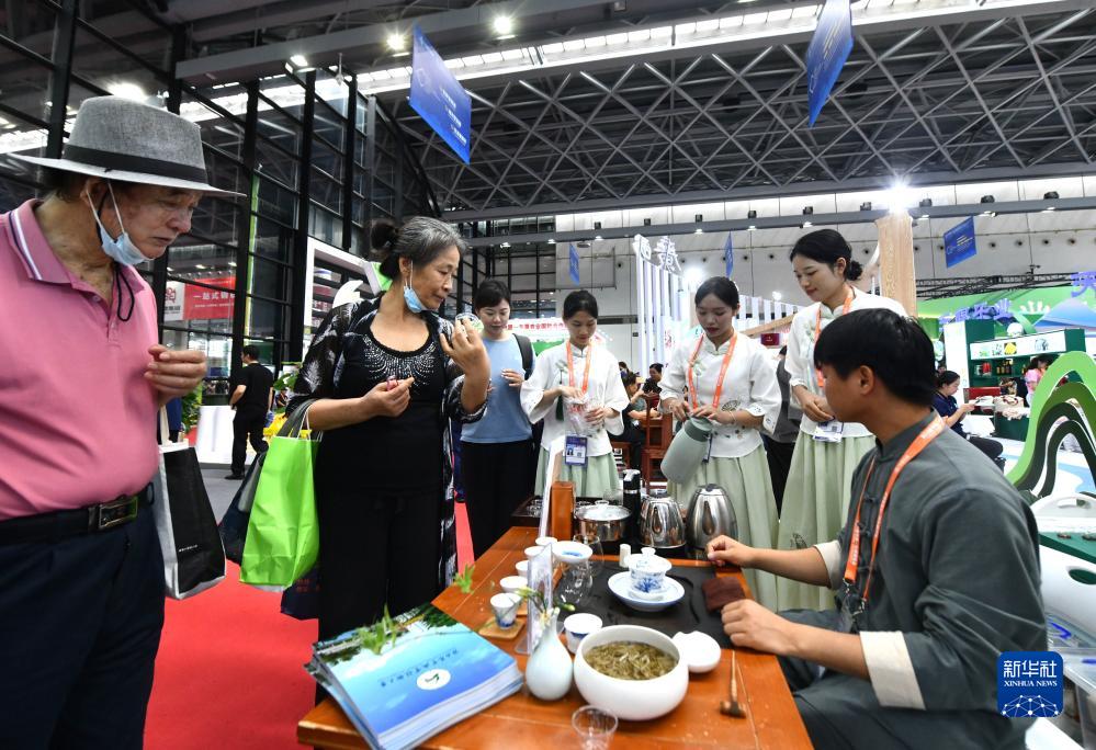 9月19日,觀(guān)眾在東博會(huì )上品飲廣西六堡茶。