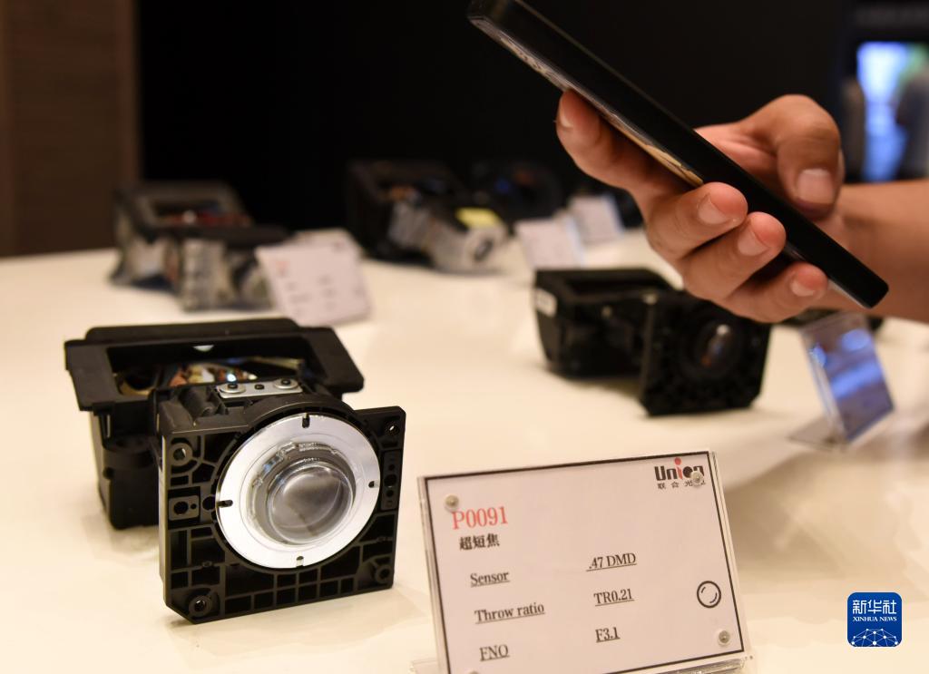 9月19日,一名參會(huì )者在拍攝激光電視使用的超短焦鏡頭。