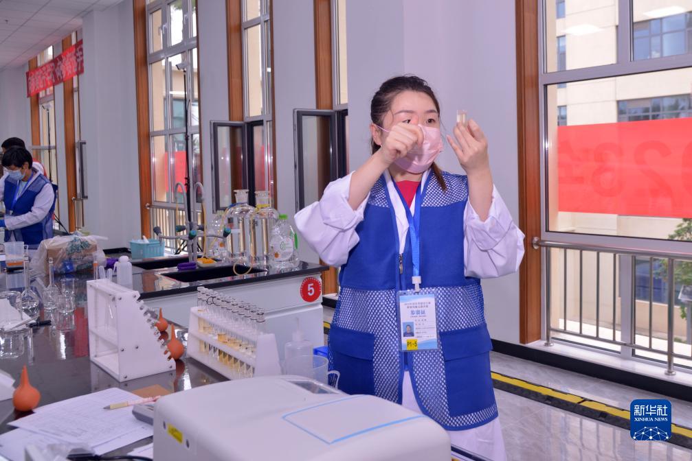 9月19日,在河北省建設行業(yè)職業(yè)技能競賽決賽現場(chǎng),選手在進(jìn)行水樣中氨氮含量測定比賽。