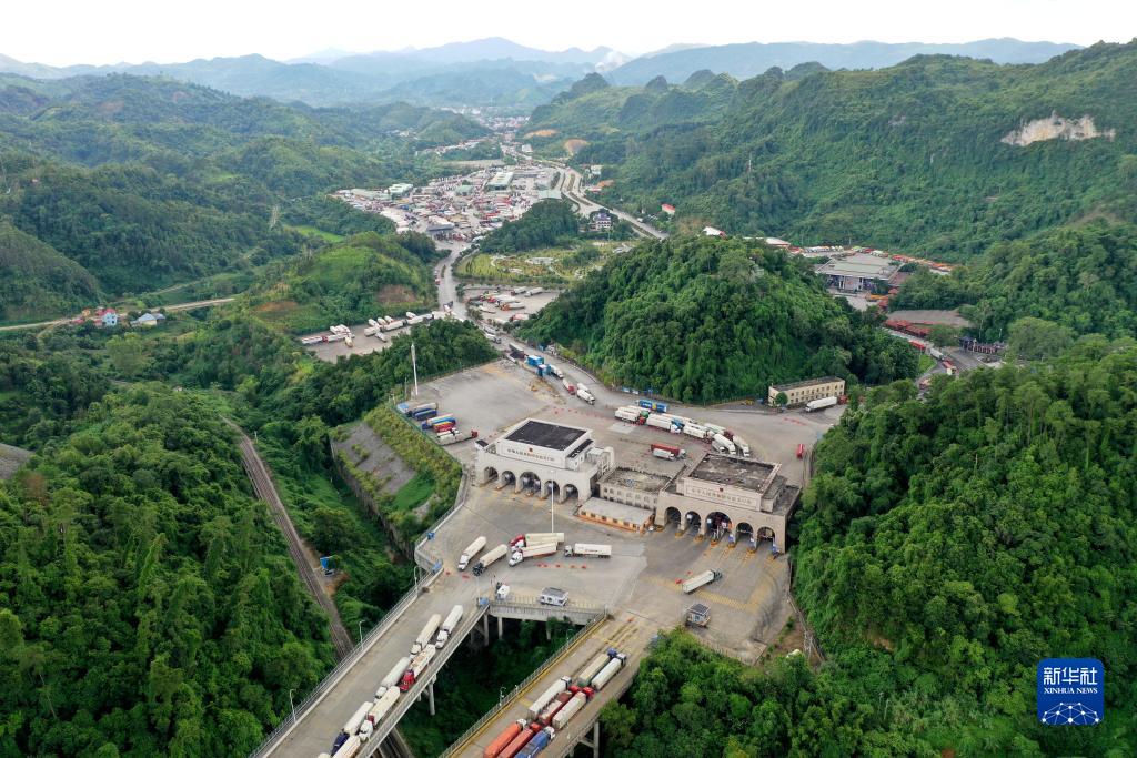 這是9月9日拍攝的繁忙的廣西憑祥友誼關(guān)口岸(無(wú)人機照片)。