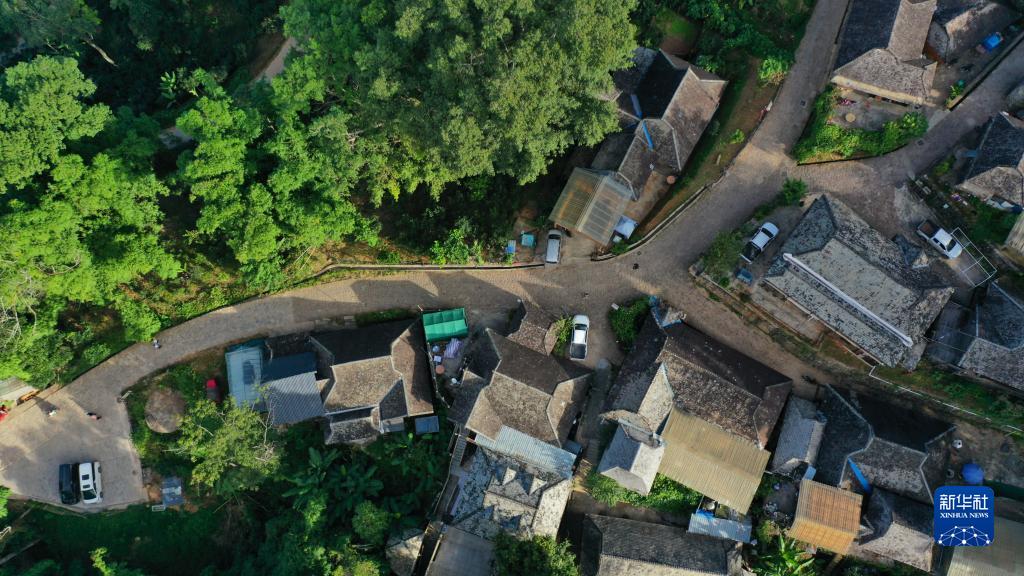 9月17日拍攝的景邁山翁基古寨的道路(無(wú)人機照片)。