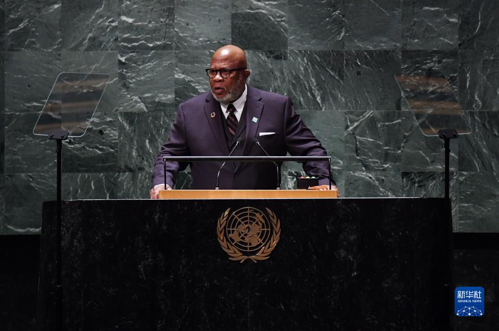 9月19日,在位于紐約的聯(lián)合國總部,第78屆聯(lián)大主席弗朗西斯在聯(lián)合國大會(huì )一般性辯論開(kāi)幕式上講話(huà)。