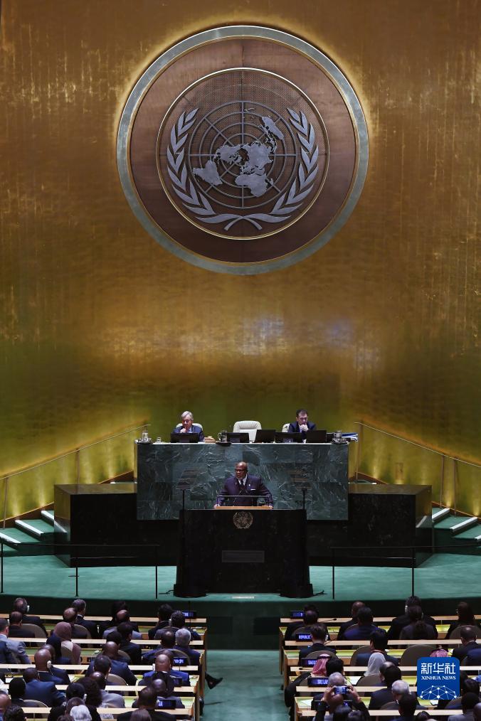9月19日,在位于紐約的聯(lián)合國總部,第78屆聯(lián)大主席弗朗西斯在聯(lián)合國大會(huì )一般性辯論開(kāi)幕式上講話(huà)。