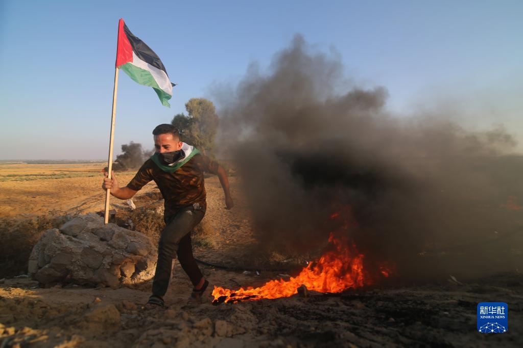 9月19日,在加沙地帶南部加沙與以色列邊境圍欄附近,巴勒斯坦抗議者參與示威活動(dòng)。