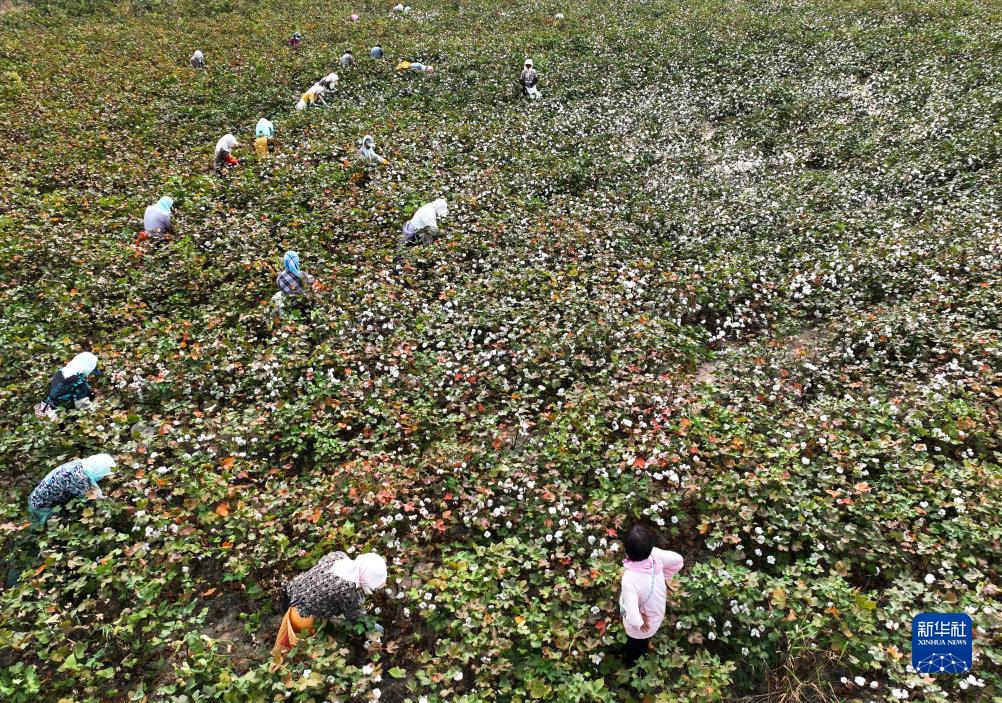 9月19日,山東省無(wú)棣縣西小王鎮棉農在采收新棉(無(wú)人機照片)。
