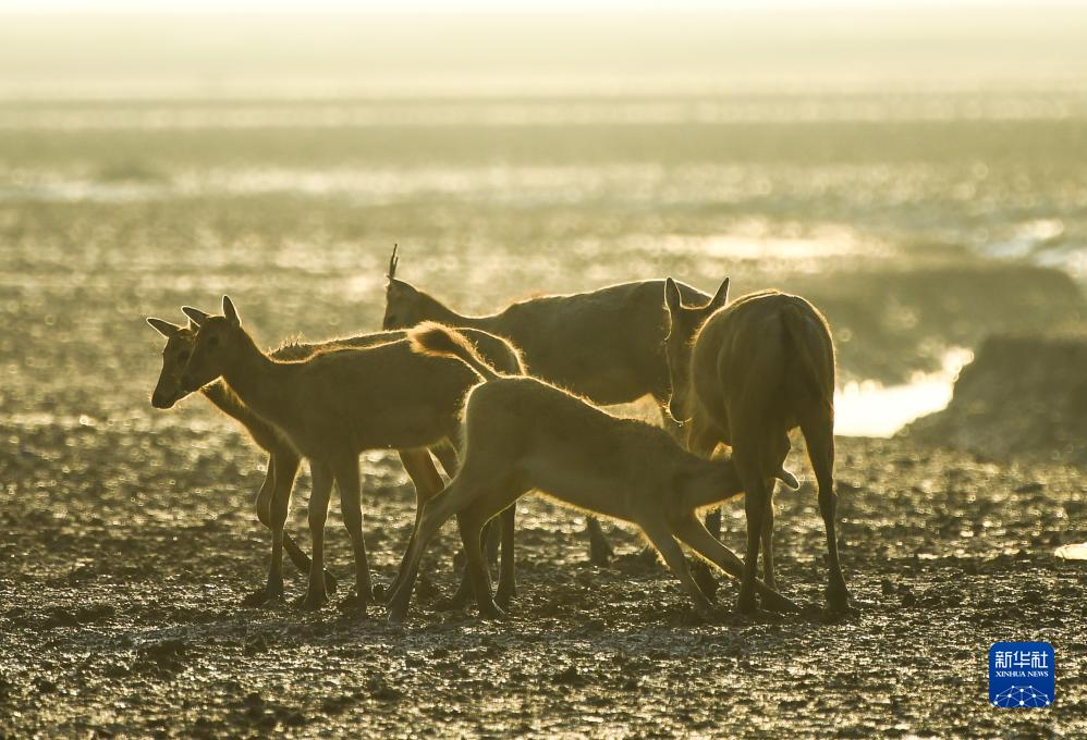 麋鹿生活在江蘇大豐麋鹿國家級自然保護區(8月21日攝,無(wú)人機照片)。