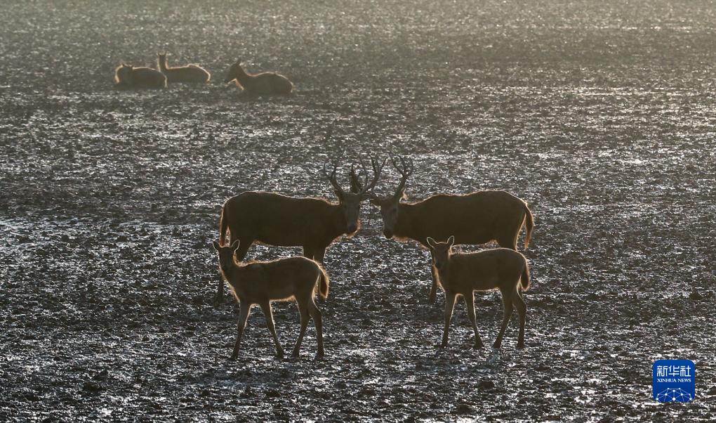 大豐麋鹿國家級自然保護區野外生活的麋鹿種群( 8月21日攝)。