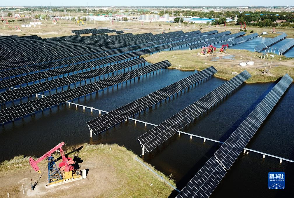 這是9月19日拍攝的大慶油田星火水面光伏電站局部(無(wú)人機照片)。