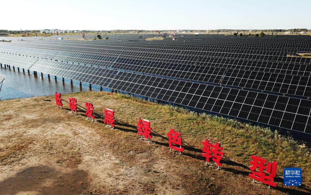 這是9月19日拍攝的大慶油田星火水面光伏電站局部(無(wú)人機照片)。