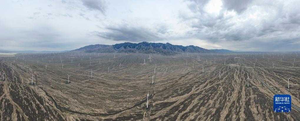新疆達坂城風(fēng)電場(chǎng)(8月3日攝,無(wú)人機全景照片)。