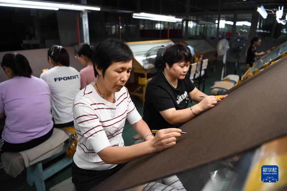 9月20日,安美橋(南宮)羊絨制品有限公司的工人在檢查羊絨面料。