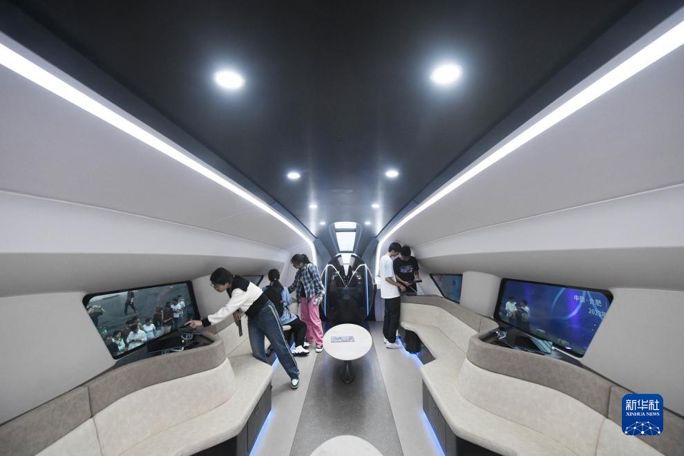 9月20日,在2023世界制造業(yè)大會(huì )上,觀(guān)眾近距離了解時(shí)速600公里高速磁浮交通系統。