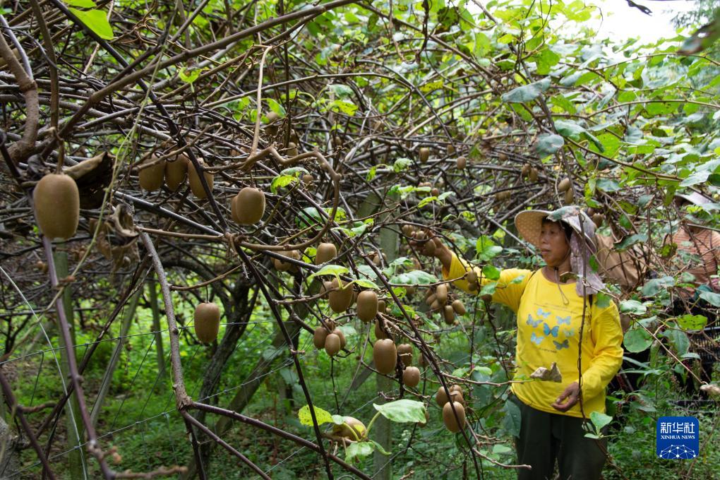 9月20日,湖南省永州市藍山縣所城鎮舜源村獼猴桃種植基地,當地果農在采摘獼猴桃。