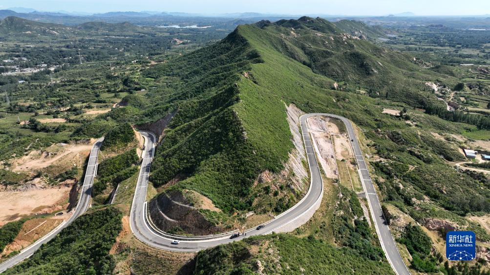 這是9月20日拍攝的河北省石家莊市行唐縣口頭鎮蘇家莊村一處盤(pán)山鄉村公路(無(wú)人機照片)。