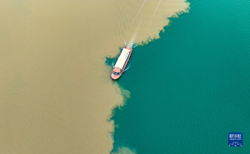 9月20日,受降雨影響,漢江湖北襄陽(yáng)城區段呈現出“涇渭分明”的景觀(guān)(無(wú)人機照片)。