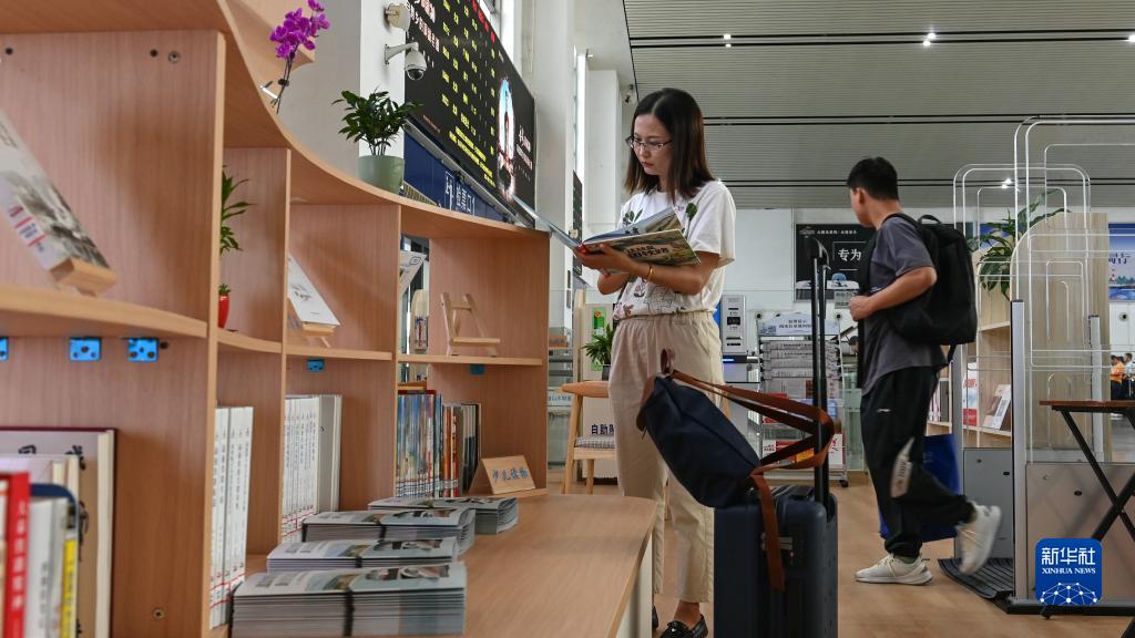 9月20日,在欽州東站,乘客在高鐵讀書(shū)驛站閱讀書(shū)籍。