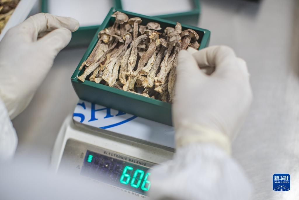 9月20日,在重慶市城口縣嶸彬農業(yè)開(kāi)發(fā)有限公司,工人將風(fēng)干后的食用菌稱(chēng)重裝袋。