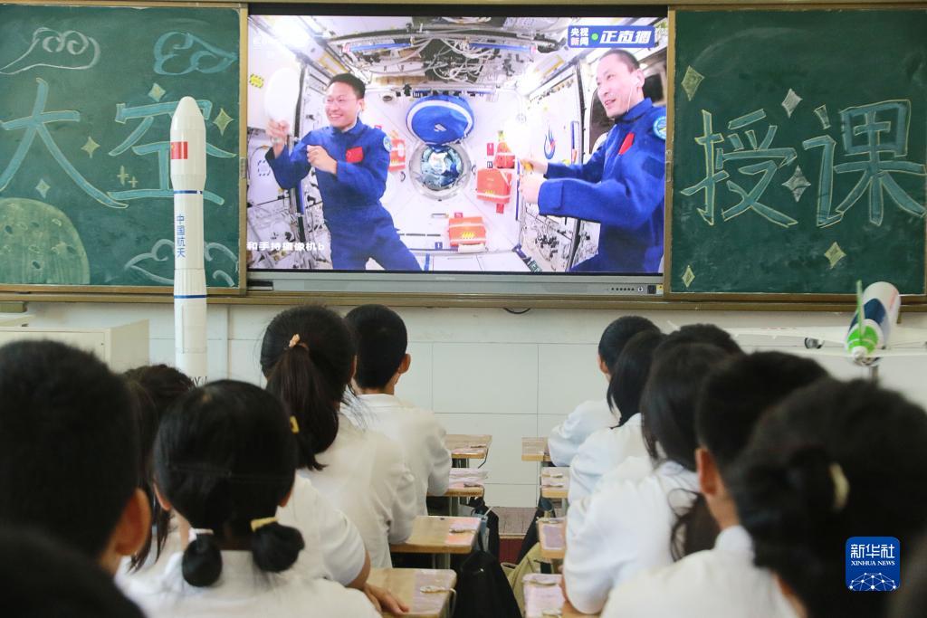 9月21日,在山東省高密市文昌中學(xué),學(xué)生收看“天宮課堂”第四課。