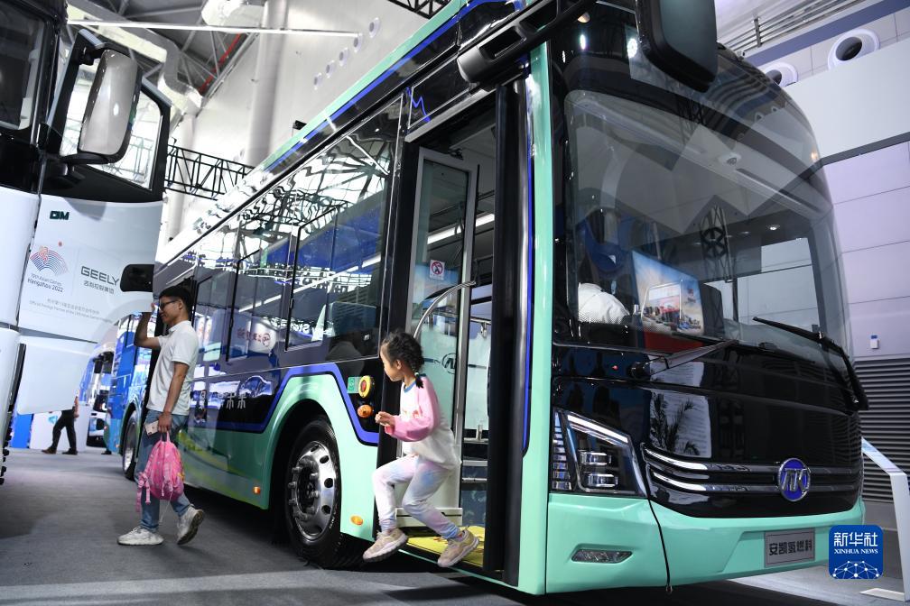 這是2023世界制造業(yè)大會(huì )上展出的氫燃料城市客車(chē)(9月21日攝)。