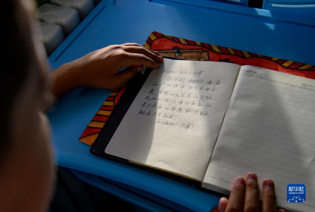 在新疆喀什第二中學(xué),九年級學(xué)生拉迪爾·拉齊尼收到老師贈送的開(kāi)學(xué)禮物(9月7日攝)。