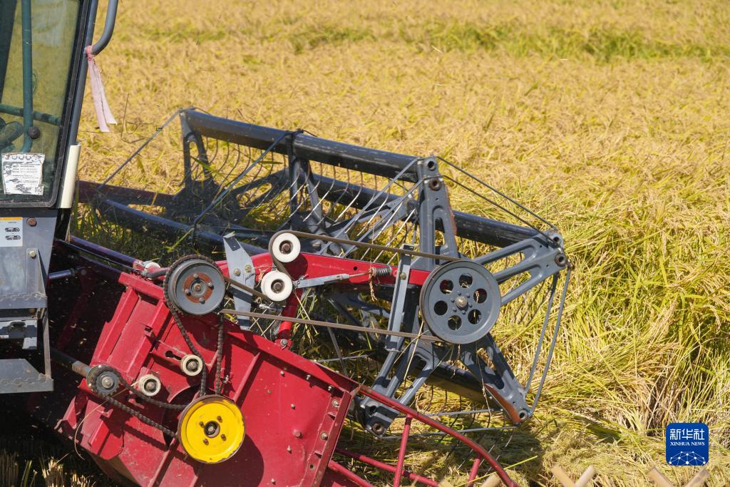 近日,“北大倉”黑龍江省進(jìn)入秋收季,在墾區的水稻種植區,收割機械在田間忙碌收獲。