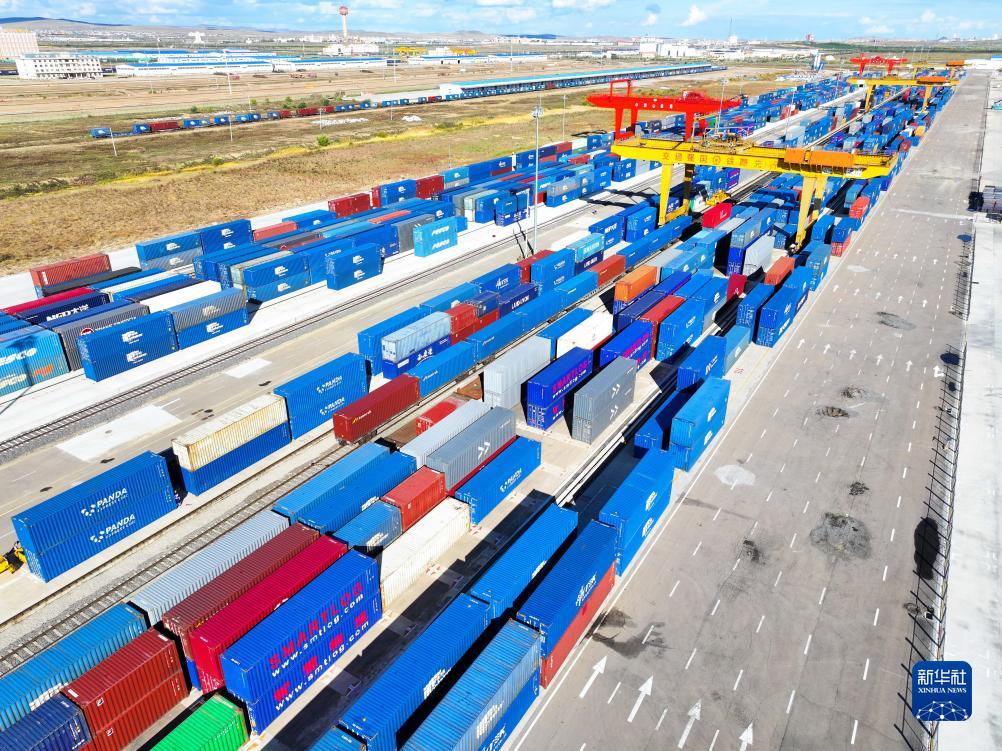 這是9月20日拍攝的滿(mǎn)洲里站貨運車(chē)間集裝箱場(chǎng)(無(wú)人機照片)。