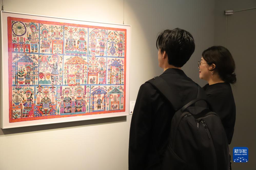 9月21日,人們在日本東京舉行的庫淑蘭剪紙藝術(shù)展預展上觀(guān)看剪紙作品。