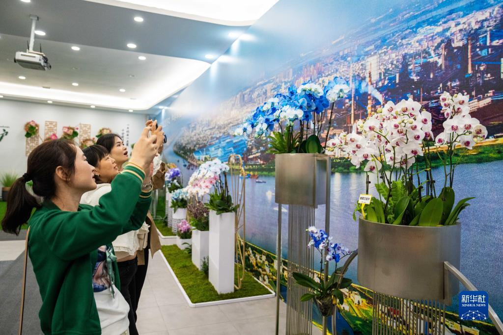 9月22日,在湘潭盤(pán)龍大觀(guān)園,觀(guān)眾們在給展出的綠植拍照。