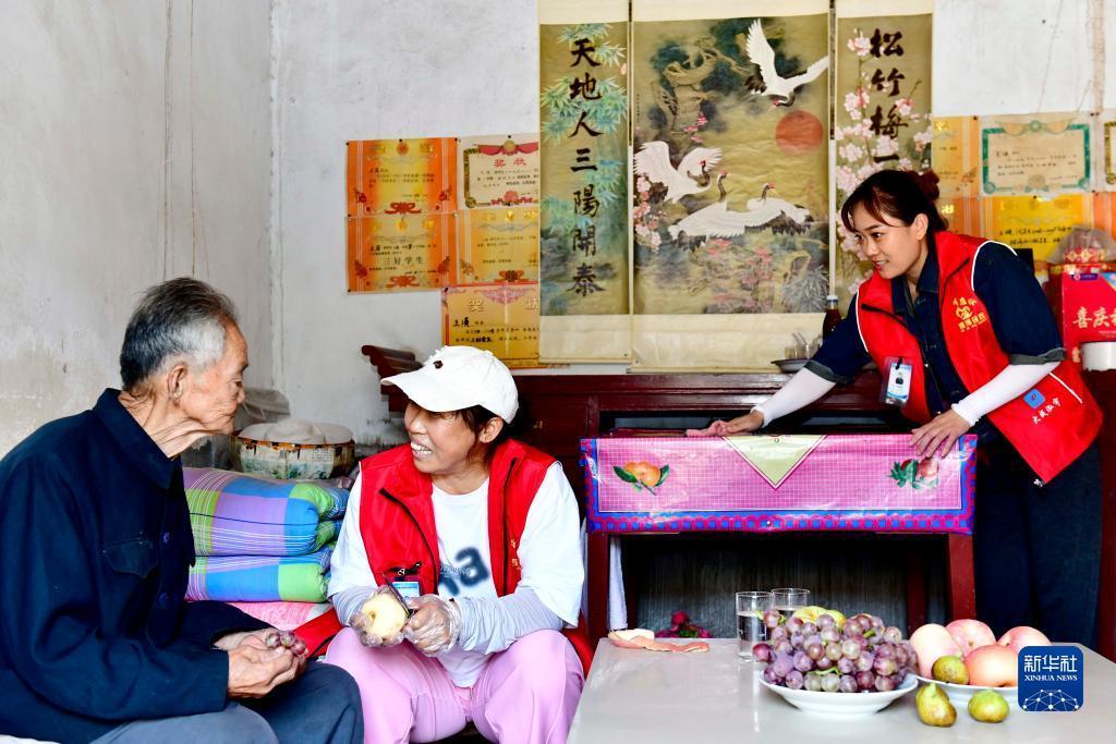 9月22日,在鄆城縣鄆州街道王沙灣社區,鄆城縣居家養老服務(wù)中心的工作人員入戶(hù)照顧分散供養特困人員。