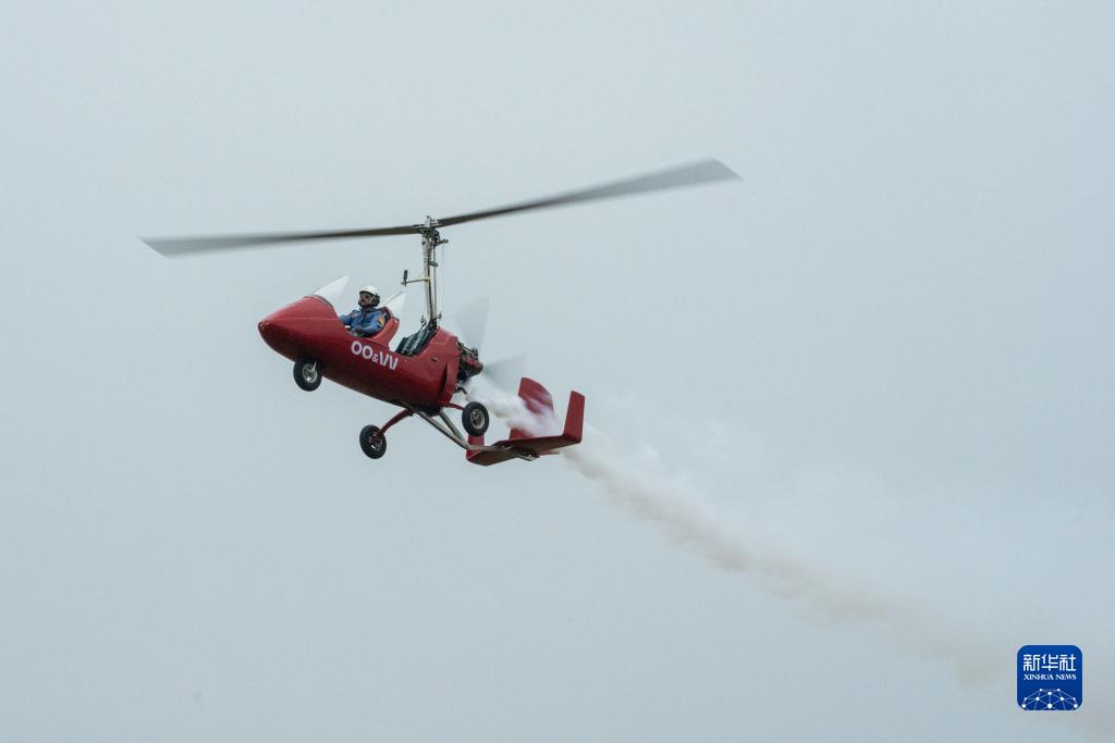 9月22日,在湖南株洲蘆淞機場(chǎng),旋翼機飛行員進(jìn)行飛行表演。