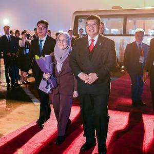 9月22日,來(lái)華出席杭州亞運會(huì )開(kāi)幕式的馬來(lái)西亞國會(huì )下議院議長(cháng)佐哈里抵達浙江省杭州市。