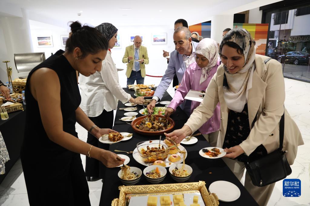 9月21日,在摩洛哥首都拉巴特,摩洛哥嘉賓在“你好,北京”文旅交流活動(dòng)中品嘗炸醬面。