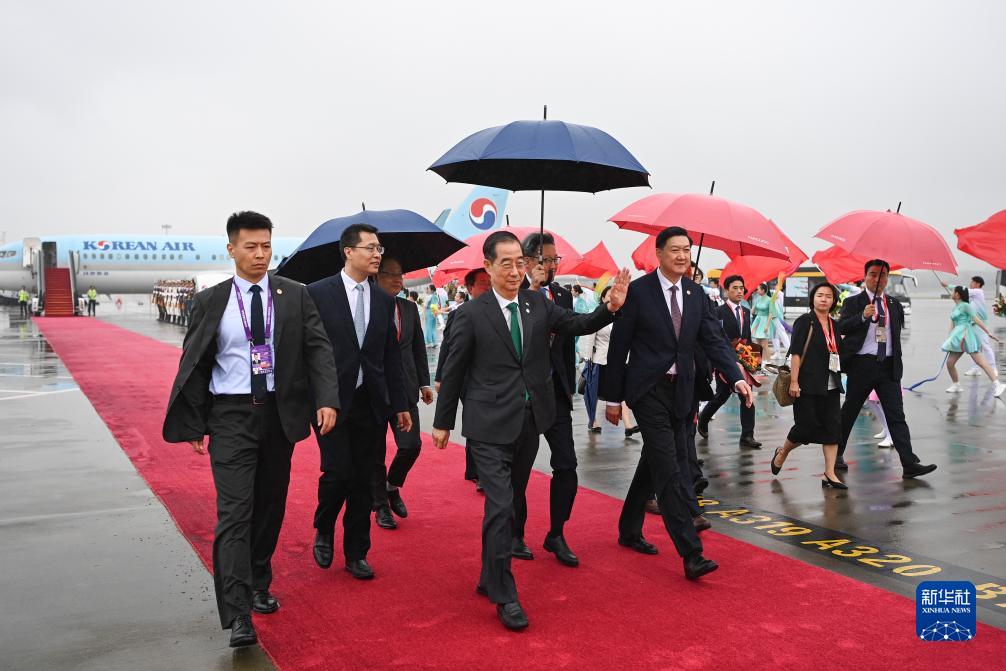 9月23日上午,來(lái)華出席杭州亞運會(huì )開(kāi)幕式的韓國總理韓德洙抵達浙江省杭州市。