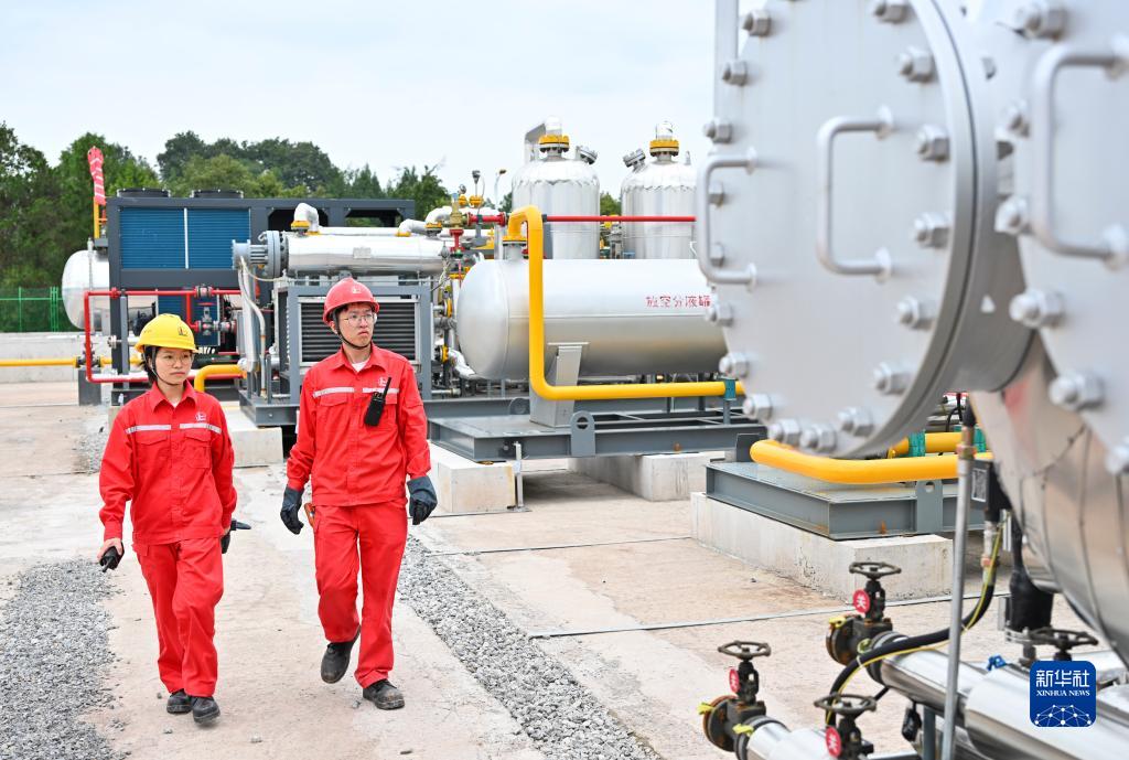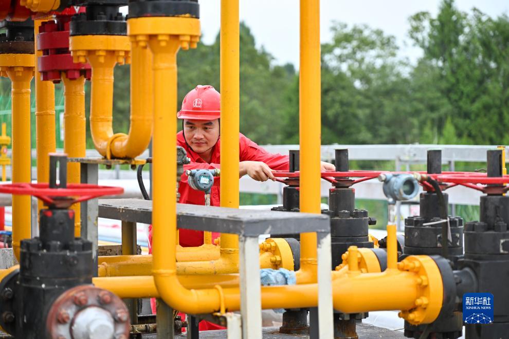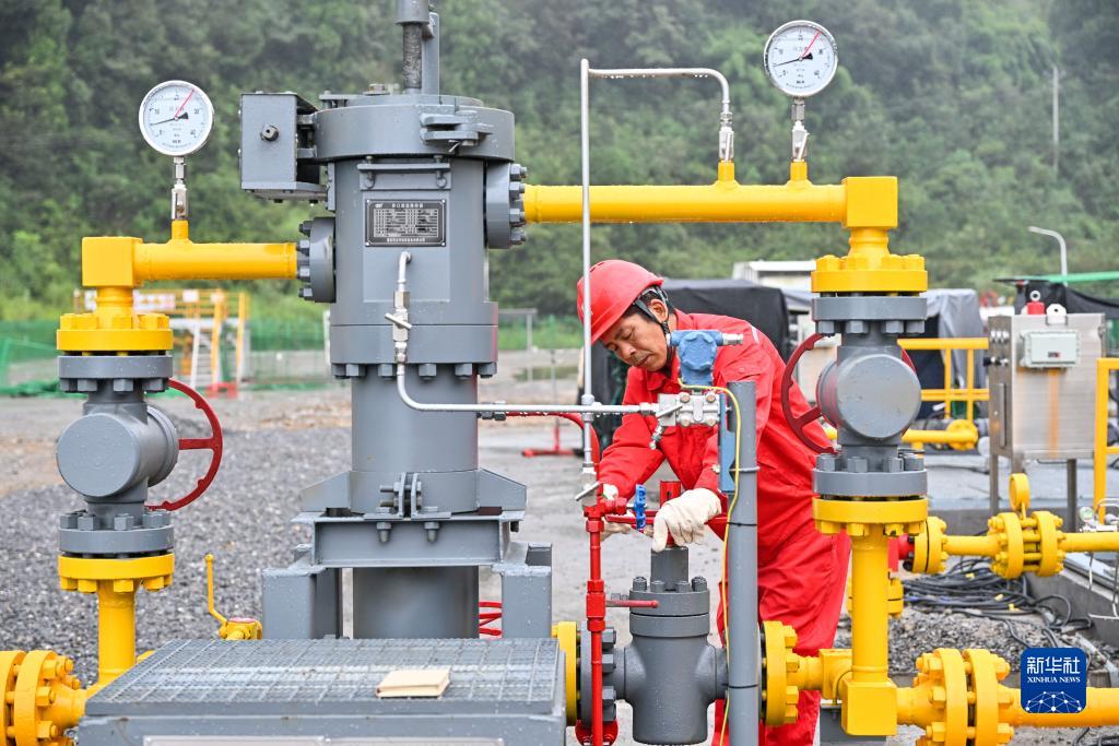 技術(shù)人員在位于重慶忠縣的涪陵頁(yè)巖氣田興頁(yè)L1001井對設備進(jìn)行巡檢(9月19日攝)。