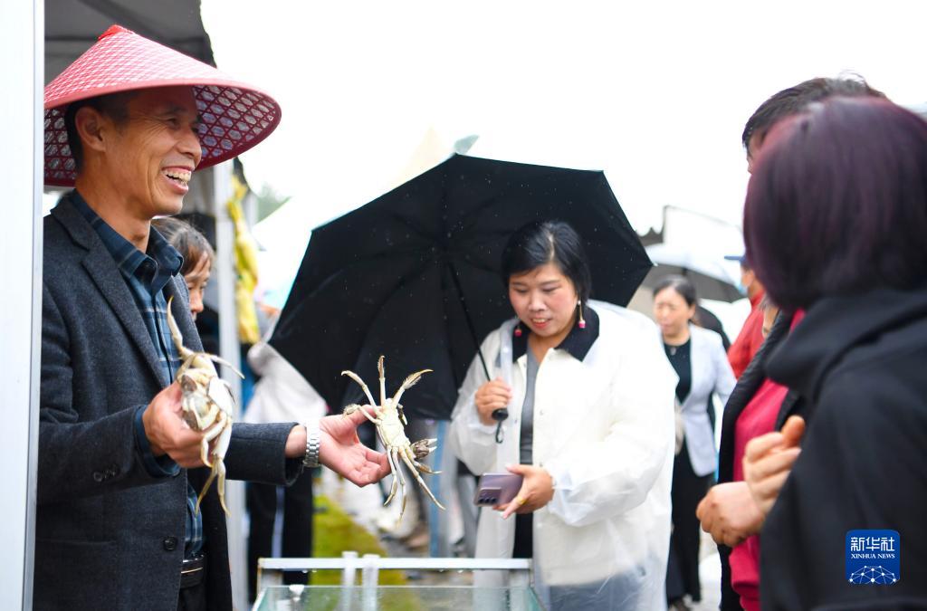 9月23日,養殖戶(hù)在活動(dòng)現場(chǎng)售賣(mài)螃蟹。
