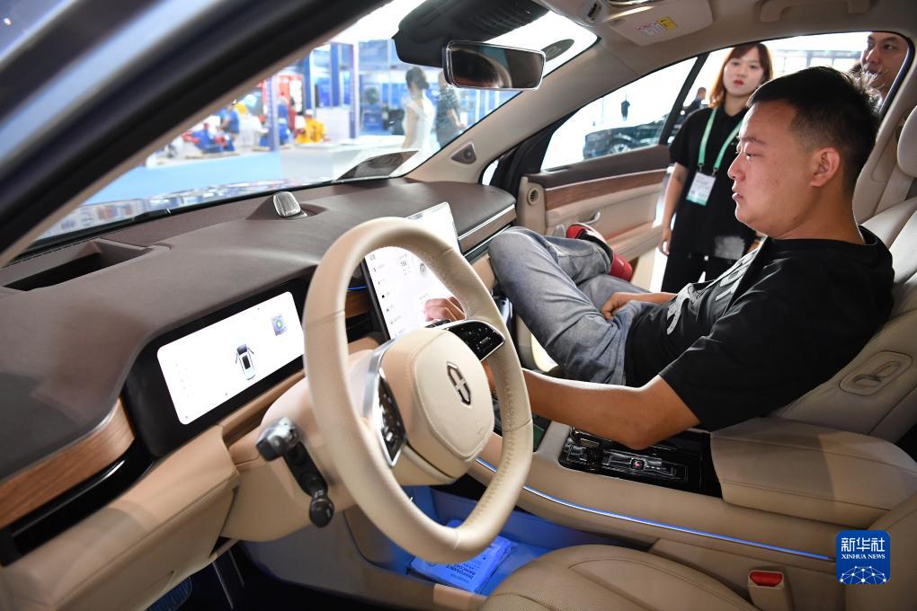 9月22日,觀(guān)眾在展會(huì )上體驗一款新能源汽車(chē)。