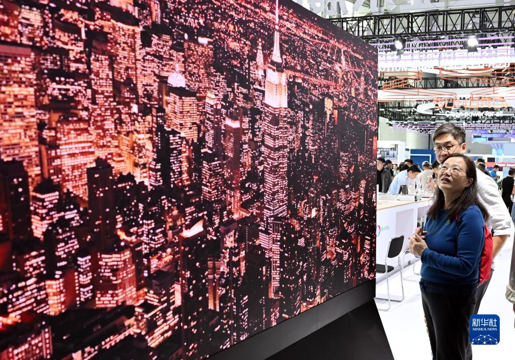 9月22日,觀(guān)眾在2023世界制造業(yè)大會(huì )集成電路與新型顯示展區觀(guān)看一款LED顯示屏。