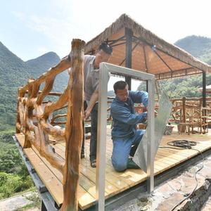 9月23日,在柳州市融安縣東起鄉崖腳村銅板屯,村民在旅游設施建設工地上作業(yè)。
