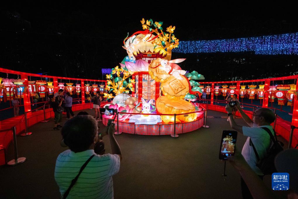 9月23日,人們在香港維多利亞公園參觀(guān)中秋彩燈會(huì )。